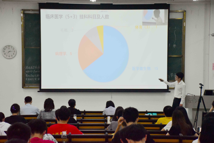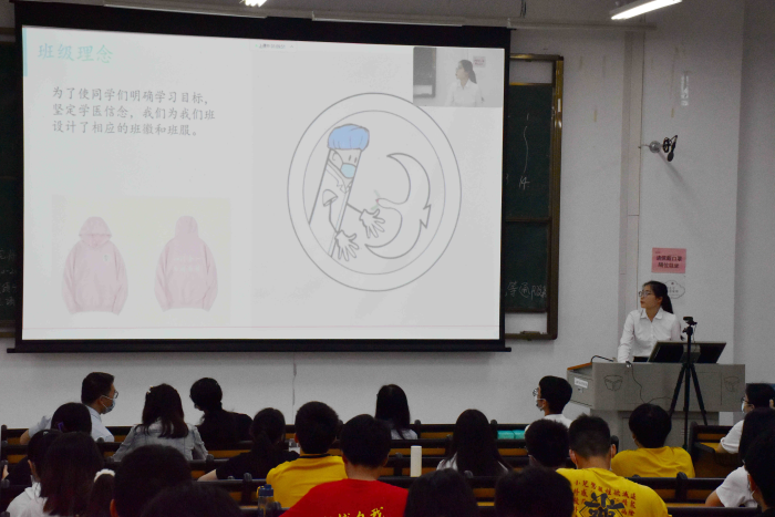 4月23日晚,在武鸣校区A1-110教室,基础医学院2020级举办“第三学期成绩分析会暨班级建设经验分享会”。分享会采用线下线上结合的形式开展,年级办全体老师及2020级全体同学参加了本次分享会。