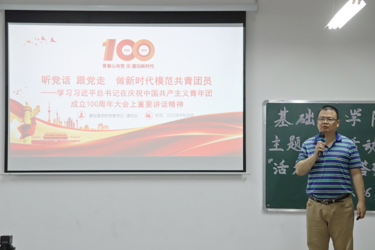为增强团支部集体创新能力和凝聚力,培养团员的集体感和荣誉感,基础医学院团委于5月26日晚在明德楼121学生活动室举办了“喜迎二十大、永远跟党走、奋进新征程”主题团日活动暨2021-2022学年基础医学院“活力团支部”答辩会。