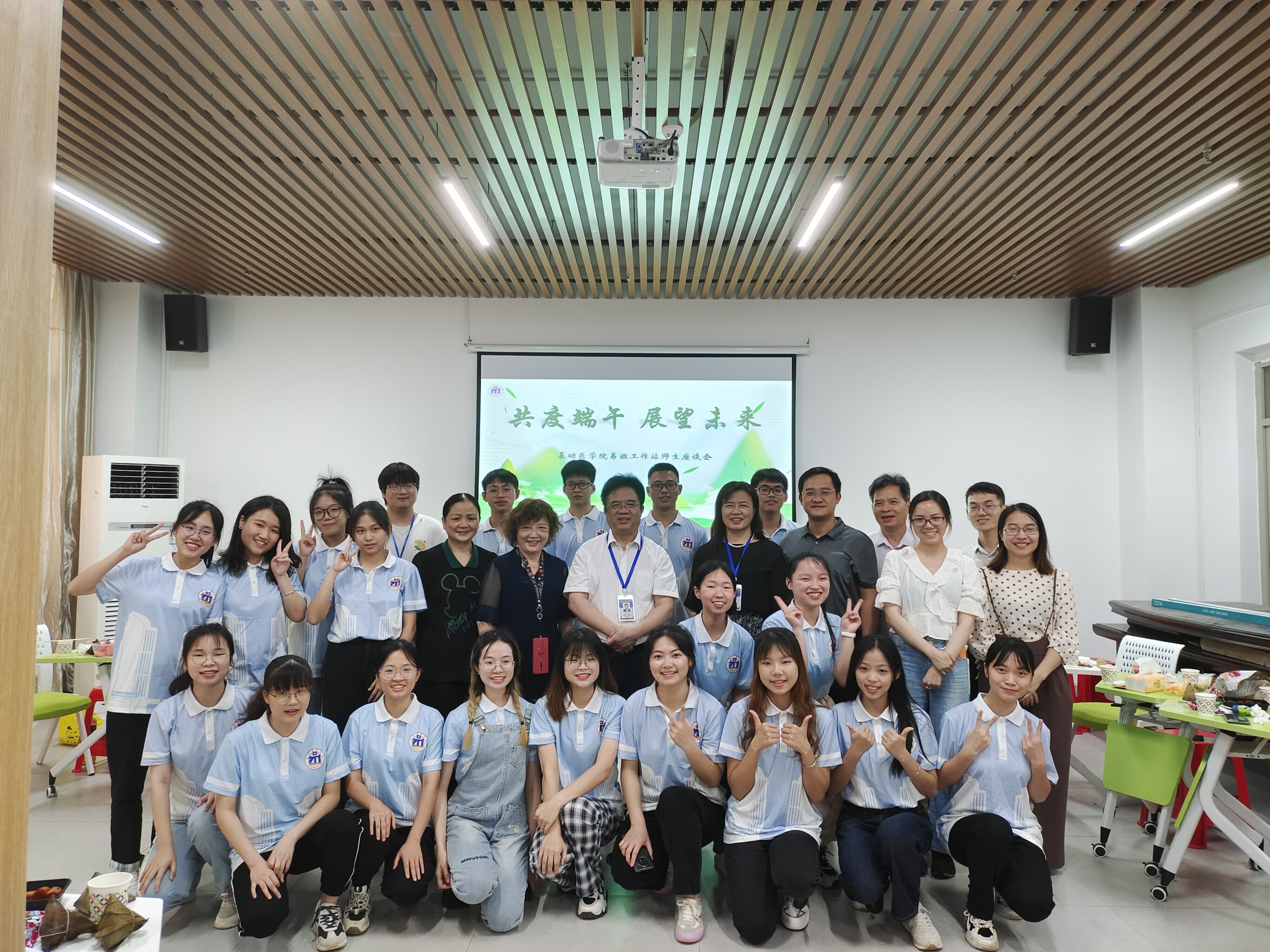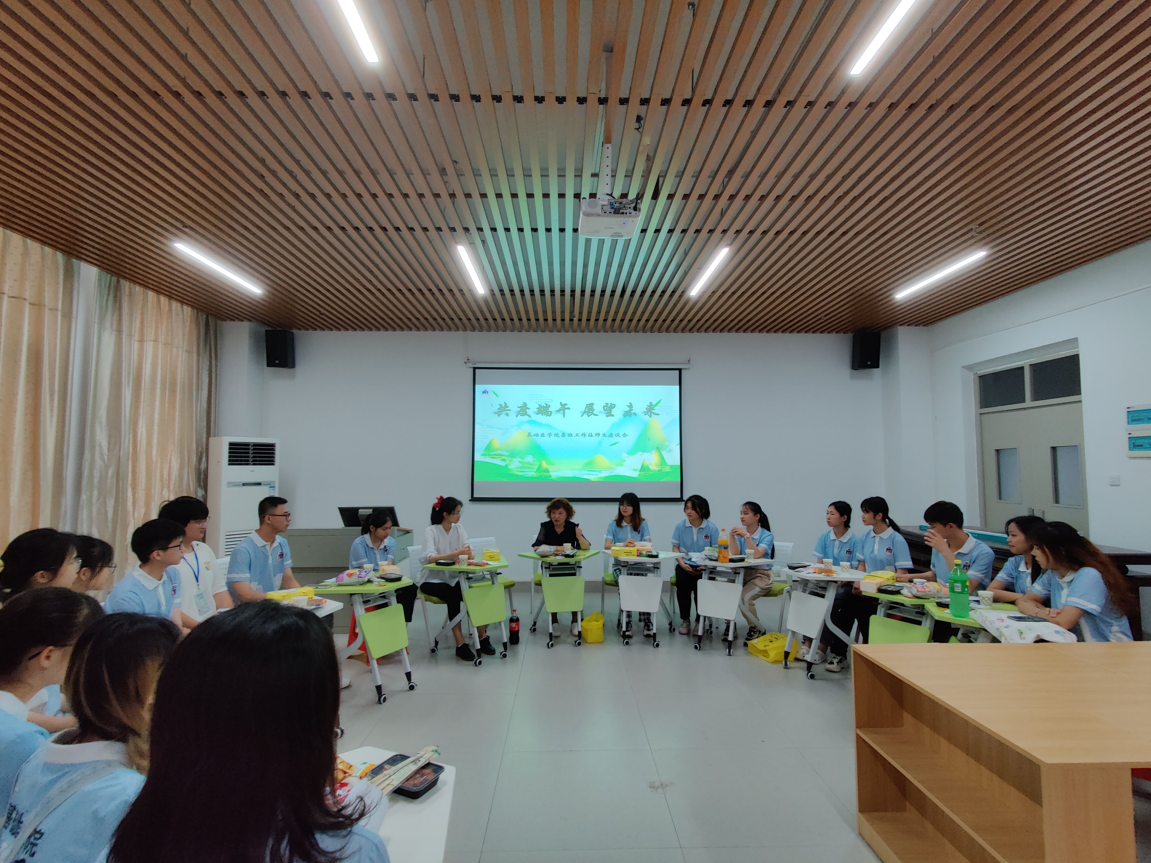 武鸣校区值班校领导曾志羽副校长、伍伟锋副校长、学校职能部门领导、学院领导应邀参加了师生端午茶话会。校领导对学生骨干、发展对象、入党积极分子、学生组织代表表达了端午佳节美好祝福,师生互动交流,并对基础学子给予殷切期望:第一,希望同学们牢记医学生“健康所系 性命相托”的神圣使命,把专业知识和技能学扎实记牢固,为从事医疗事业打下坚实基础;第二,希望同学们树立创新创业新理念,培养适应教育改革社会变革的意识,努力成为社会发展需要的复合型医学人才;第三,希望同学们处理好学习与工作的关系,坚持科学的学习方法,服务同学奉献自我,努力做到学习工作两不误。