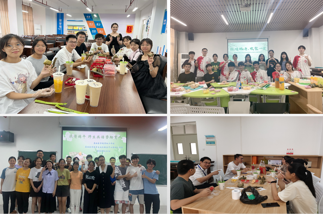 连续三天的端午假期期间,基础医学院精心策划了以“粽香情浓-- 弘扬传统文化 强国复兴有我”为主题的师生共度端午节系列活动。活动加强对学生的陪伴与引导,促进了师生交流,让学生感受到学校学院老师的关爱,度过一个有特别而难忘的端午假期。