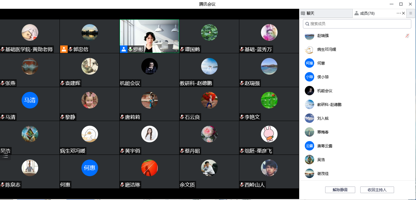 8月23日,基础医学院召开2022年秋季学期开学工作准备会议,会议以线上形式召开。学院党委书记谭机永,院长谭国鹤,副院长罗彬、蓝秀万,各教研室及部门的党支书、主任、副主任、教学秘书和研究生秘书等79人参加了本次会议,会议由学院副院长罗彬主持。