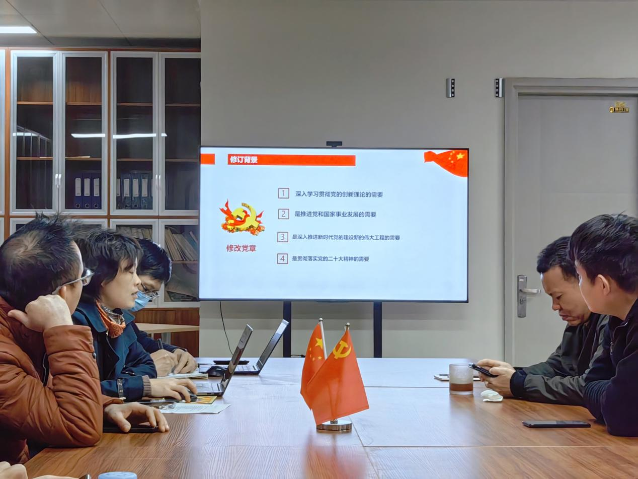 会上,磨洁琳同志从《中国共产党章程》修订的背景、意义及主要内容等方面进行了详细解读。与会党员深刻认识到,《中国共产党章程(修正案)》体现了党的十九大以来党的理论创新、实践创新、制度创新成果,体现了党的二十大报告确定的重要思想、重要观点、重大战略、重大举措,充分彰显了马克思主义政党与时俱进的政治品格和守正创新的使命担当。