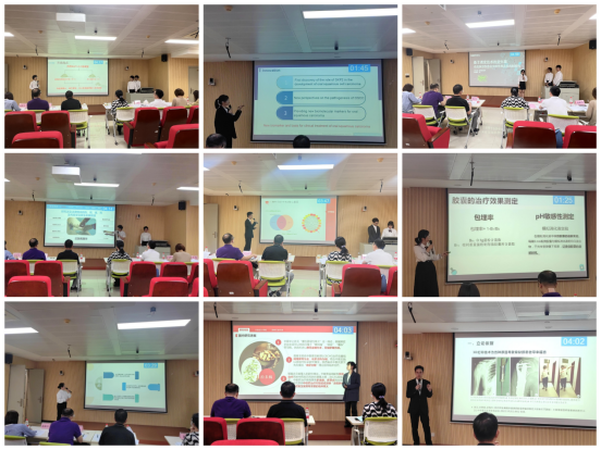 担任校赛决赛的现场评委来自我校不同的学院,分别是基础医学院曾麒燕教授、胡启平教授,第一临床医学院王可教授、党裔武教授,生命科学院谢莹教授,公共卫生学院陆彩玲教授,转化医学研究中心刘夏教授。决赛进行现场答辩,各参赛队伍从研究背景、实验思路、实验内容、成果与创新性五个方面进行了汇报和展示,并对专家提出的问题进行了回答。各参赛队伍经过前期的认真准备,充分展示了扎实的专业基础知识、活跃的创新思维、严谨的科学思辨以及沉稳灵活的答辩能力。通过专家评委的点评和指导,各参赛队伍既认识到了作品的不足之处,也明确了下一步完善和改进的方向。经过4小时的激烈角逐,最终评选出一等奖2项,二等奖5项,三等奖7项,其中13项优秀作品将代表学校参加复赛。