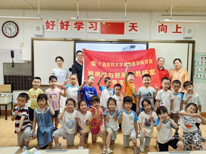 7月14日上午,基础医学院组织学与胚胎学教研室党支部组织党员教师代表前往广西医科大学附属幼儿园开展“大手拉小手 科普大讲堂”志愿服务活动。