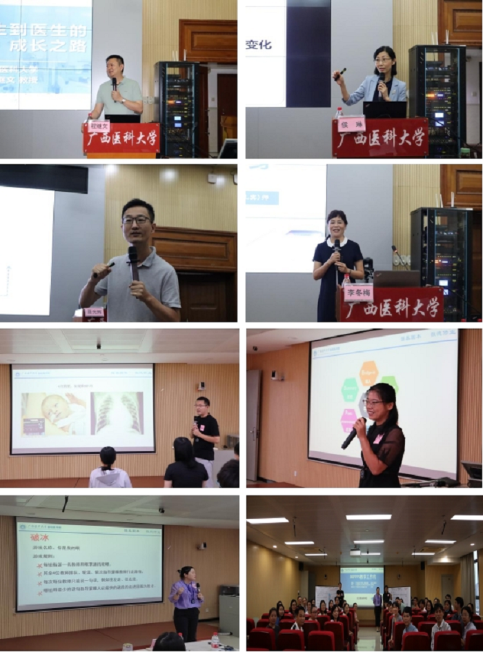 本次培训采取了专家讲座、专题报告、学习研讨、工作坊等形式进行,邀请了中共广西区委党校侯琳副教授、广西华侨学校国家高级礼仪培训师李冬梅老师和学校教务处副处长程继文教授、公共卫生学院聂光辉教授、第一附属医院陈峋副主任医师、生命科学研究院李文副教授、我院赵文婧老师作专题培训,培训围绕师德师风、教师礼仪、心理健康、医学生成长、BOPPPS教学设计、网络舆情应对等内容开展,现场老师们积极互动、热烈讨论、气氛活跃。