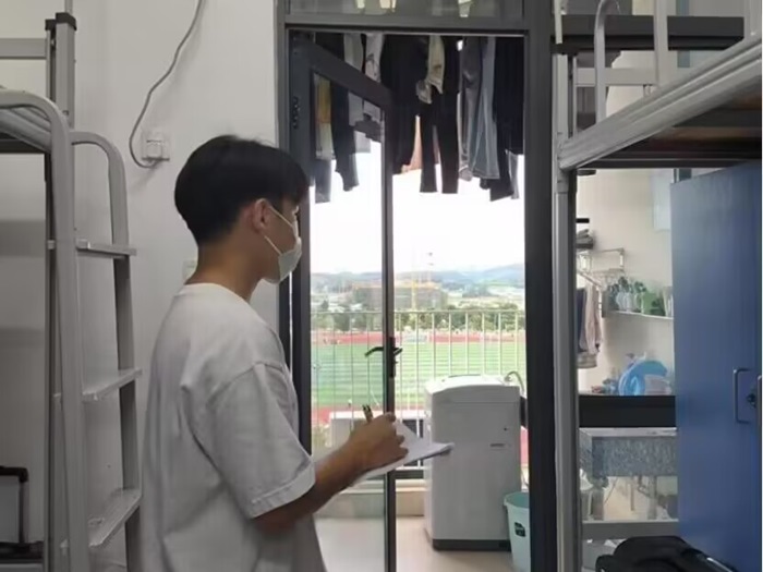 宿舍是大学生学习、生活和休息的重要场所,宿舍安全卫生检查是建设安全文明校园的内在要求,也是学生教育管理工作的关键环节。在学院学生工作办公室指导下,由学生成长服务中心组织开展,对我院538间学生宿舍进行全覆盖检查,重点检查学生宿舍用电安全及内务卫生情况。检查过程中,对于做得好的宿舍进行表扬,对于存在安全隐患、卫生内务不合格的宿舍现场反馈存在问题,并提出整改意见。