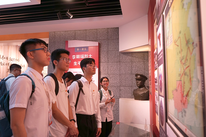 纪念馆里,师生们跟随学习参观的路线,认真观看李明瑞、韦拔群等烈士英雄事迹的相关文史资料,仿佛回到李明瑞、韦拔群等同志领导起义,救国为民的生动场景,深刻感受到烈士们以革命为奋斗目标,不惜抛头颅、洒热血,赴汤蹈火,用他们宝贵的青春乃至生命践行为国家、为民族积极奉献的精神。