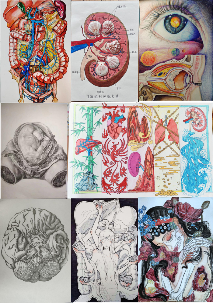 知识与绘画共舞,色彩和创意俱佳。参赛选手们将所学的知识融入绘画中,运用线条、色彩和构图等技巧,绘制出饱含医学浪漫的优秀作品。入围复赛作品经现场展示、网络投票及专家评审,根据作品的科学性、艺术性、创新性等多方面综合打分,最终评选出一等奖4名,二等奖13名,三等奖39名。