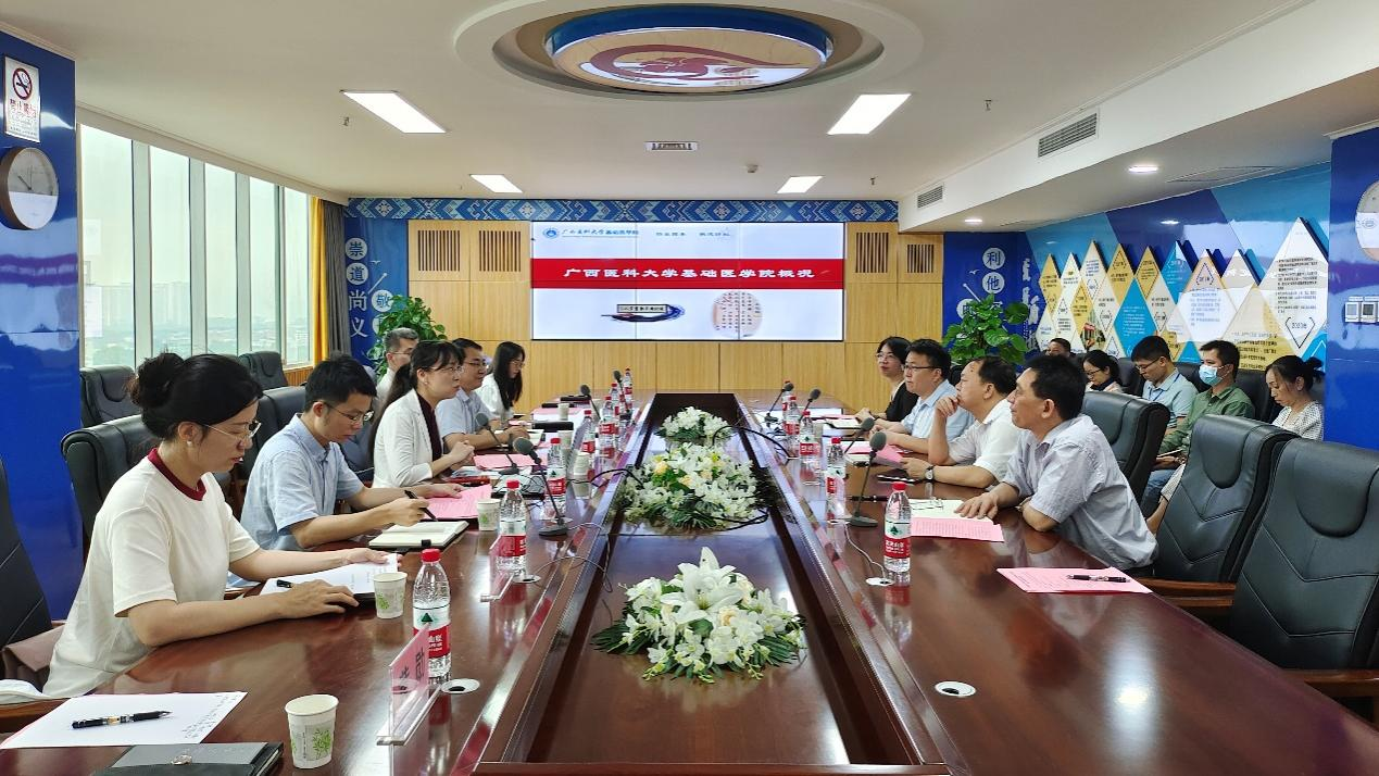 在座谈交流会上,南宁中心血站站长苏常山、副站长莫秋红分别介绍了中心血站的基本情况、资源条件和人才需求等。我院副院长罗彬表明此行目的,并详细介绍了学院的基本情况、专业和学位点建设、学生培养情况等。与会人员就实习就业一体化培养、联合培养基地建设、科研合作等方面进行了探讨交流。会后,学院一行走访参观了南宁中心血站实验室、科普馆和实习生生活区。