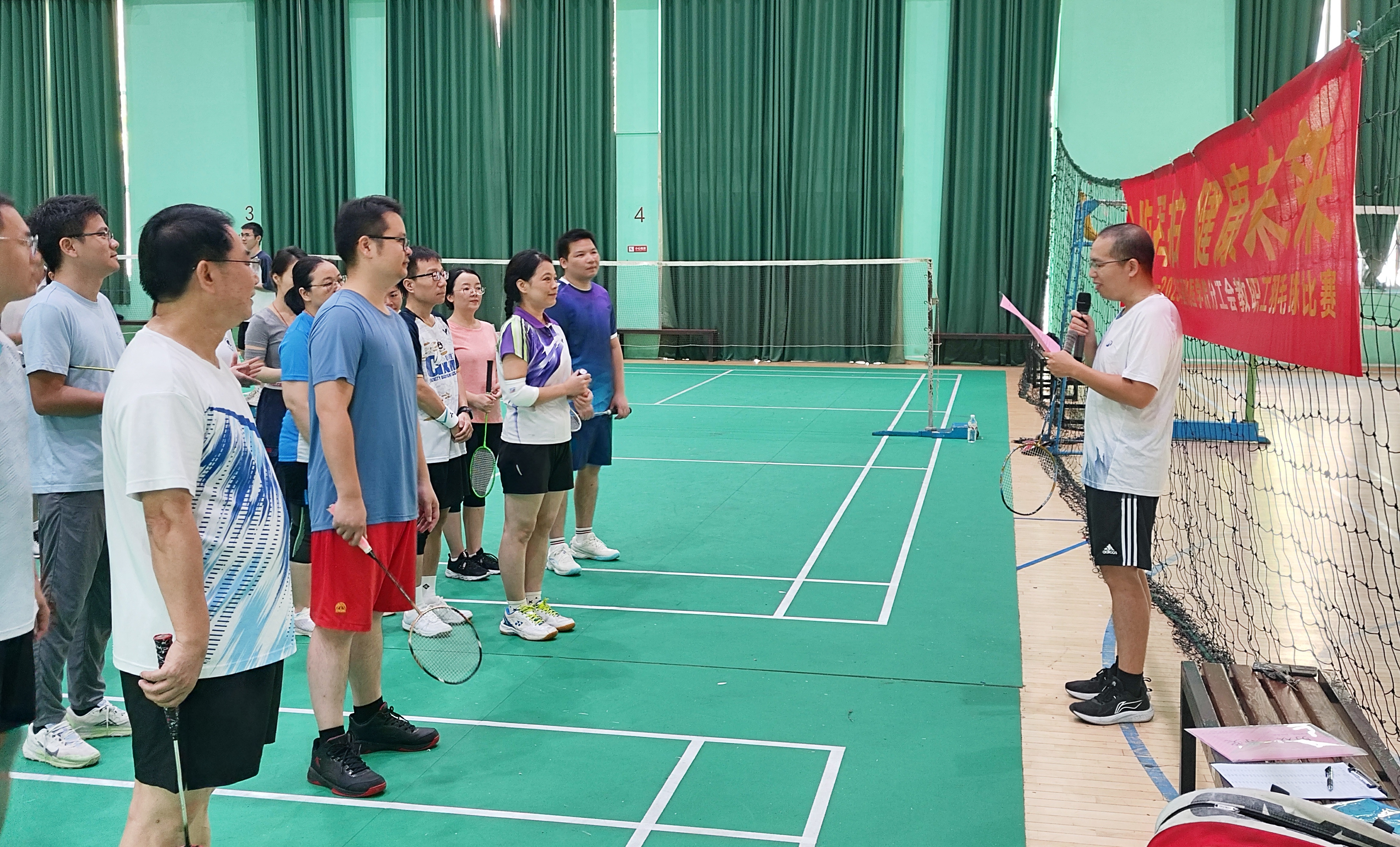 秋高气爽,丹桂飘香。时值全民健康生活方式宣传月,为进一步丰富教职工文体生活、促进同事间交流,2025年9月27日上午,基础医学院分工会在校本部风雨球馆举办“羽你挥拍 健康未来”2025年教职工羽毛球比赛,学院党委副书记王闻楚、副院长蓝秀万出席开幕式。