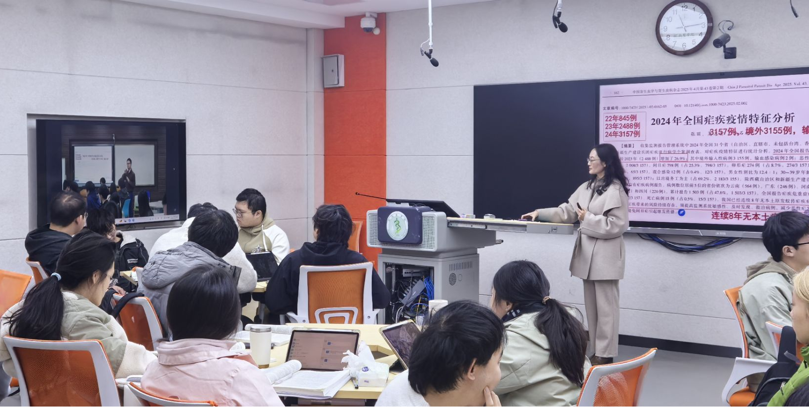在前期筹备阶段,两校人体寄生虫学教研室围绕“疟原虫”教学内容开展线上集体备课。针对南北地域差异及教学侧重点不同,创新设计“南北联动”差异化教学方案,既保障核心理论知识的一致性,又充分融入两校地域特色教学资源,为后续高效授课奠定坚实基础。授课环节中,皖南医学院刘婷副教授以清晰的逻辑框架,系统讲解疟原虫的形态特征、生活史、致病机制及临床常规诊疗方案,为学生构建了完整的理论知识体系。我院石云良副研究员结合广西地区输入性疟疾病例的实际案例,将理论知识与地方公共卫生需求紧密结合,有效提升了教学的实践性与针对性。